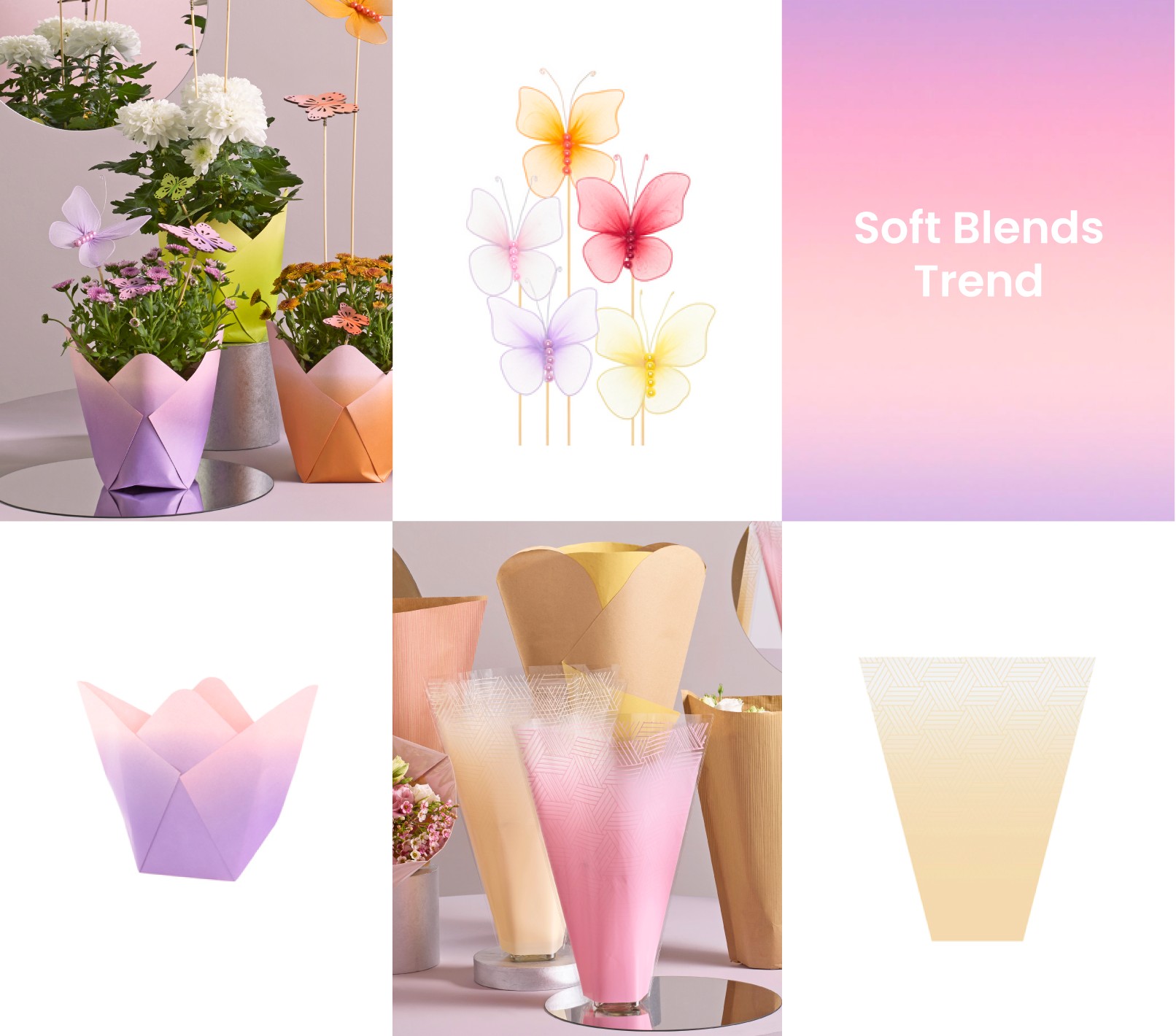 Dieser Trend zeichnet sich durch subtile, fließende Farbübergänge aus. Das Ergebnis ist ein sanftes und harmonisches Gesamtbild, das Ruhe ausstrahlt. Perfekt, um Ihre Blumen- und Pflanzenarrangements wunderschön in Szene zu setzen.